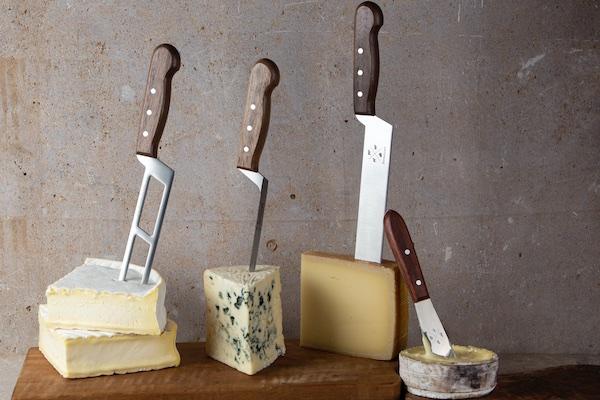 Formaticum professional cheese knives are the highest quality cheese tools. Handmade in Italy, these knives feature stainless steel blades and solid walnut handles. This set includes the following four knives and a wood box.