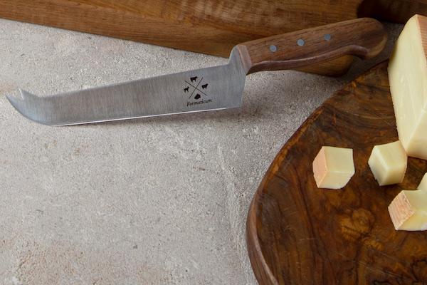 Formaticum professional cheese knives are the highest quality cheese tools. Handmade in Italy, these knives feature stainless steel blades and solid walnut handles. The offset handle design makes it easy to use and result in clean, professional cuts every time.