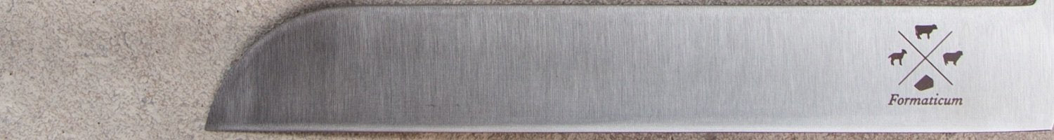 Cette lame est conçue pour couper tous les fromages à pâte ferme ou dure. Le couteau robuste coupera facilement les fromages fermes sans risquer de perdre un membre. Les couteaux à fromage professionnels Formaticum doivent toujours être lavés à la main. La lame mesure 8,5" de long x 1,25" de large.