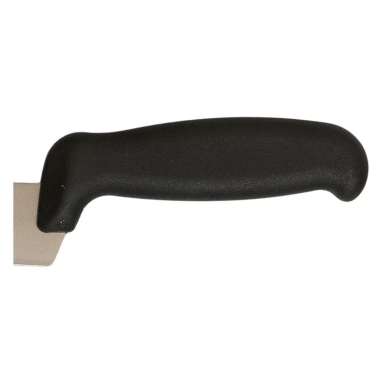 Formaticum professional cheese knives are the highest quality cheese tools. These knives are handmade in Italy and feature stainless steel blades and black polyethylene handles. The offset handle design makes it easy to use, resulting in clean, professional cuts every time. This blade is designed as a soft cheese knife and will easily cut all soft cheeses. The void on the blade helps prevent sticking. Formaticum professional cheese knives should always be hand-washed.